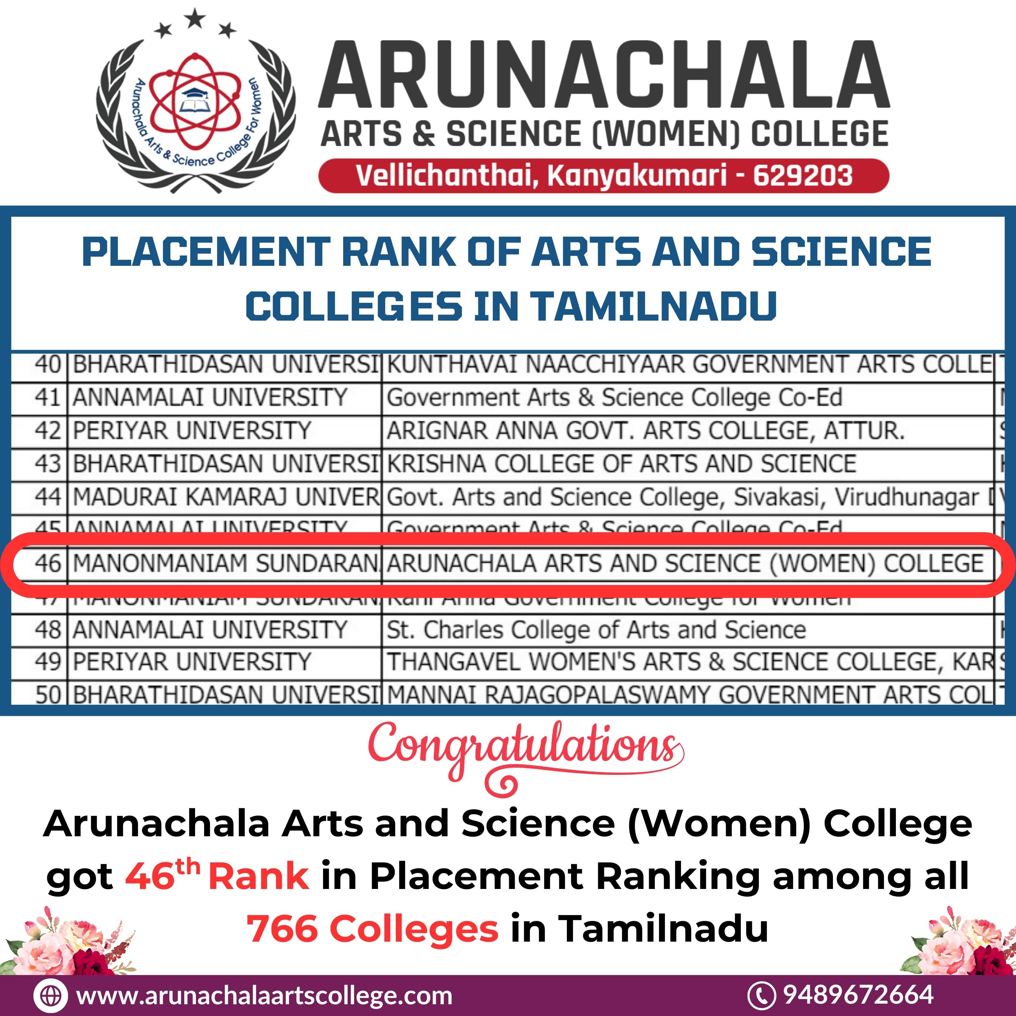 Arunachala Arts and Science College for Women, promoted by Thottam Madhavan Educational and Charitable Trust, is the College exclusively for Women with the motto to empower the women to face any challenges & to develop the skill. The trust started its journey with Arunachala School and continues its forward efforts with Arunachala college of Engg for women and the Arts & Science college.